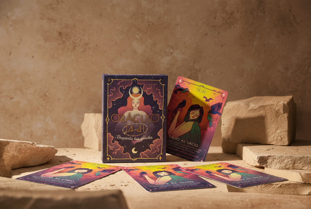 Inspirado por el poder de las sincronías y la belleza simple de lo auténtico, el Oráculo 14:41 nace en España como una invitación a quienes buscan respuestas en las señales diarias y los números espejo. Cada mazo es el fruto de una visión personal y espiritual, acompañado de un proceso de diseño y creación ético, consciente y respetuoso, donde tanto la calidad del material como la energía de las cartas se cuidan en cada detalle.